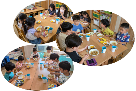 キャベツは食べられるよというお友達から、ちょっと苦手だなと思っているお友達までみんな完全完食ではありませんが食べました。少しずつ食材や、調理のお手伝いを通じて興味を持ち、今まで苦手だったメニューを口に運んでみる・・・。食育の始まり、始まり・・・です。