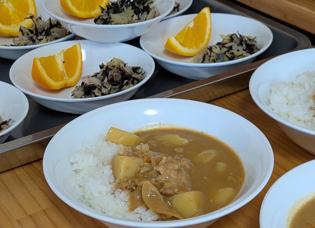 公園から帰って、自分達がお手伝いをした「キャベツとひじきのツナ和え」を食べました。